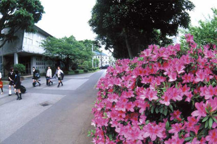左:かつての記念館(現在は美術館) 右:校庭の樹